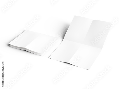 Sheet of paper folded to four. Letter or poster mockup. 3d illustration