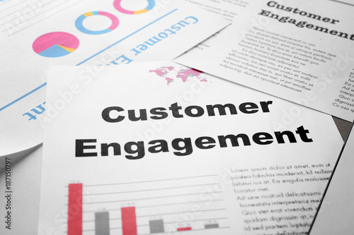 Sheet of paper with text CUSTOMER ENGAGEMENT on table