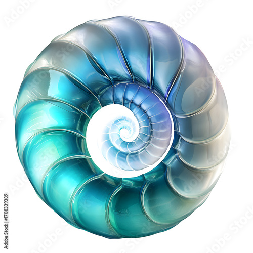 Shell spiral in oceanic blue-green gradient, isolated on white