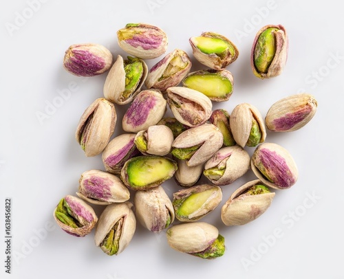 Shelled pistachios scattered on a white surface (1)