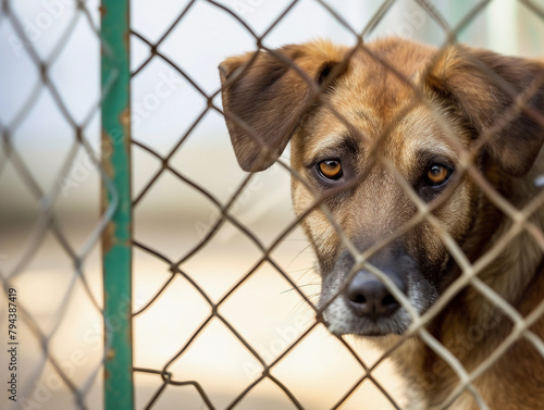 Shelter Dog Behind Fence