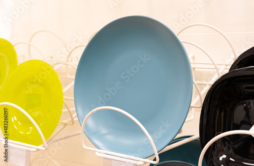 shelves with dishes on which there are plates