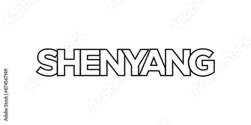 Shenyang in the China emblem. The design features a geometric style, vector illustration with bold typography in a modern font. The graphic slogan lettering.