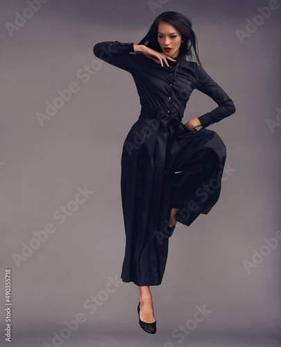 Shes a warrior. Studio shot of a beautiful young woman dressed in a martial arts outfit.