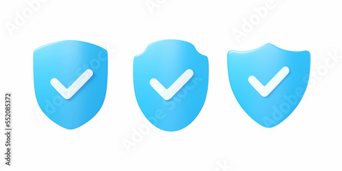 Shield 3d icon set- cyber guard illustration, blockchain protect safety element and access blue symbol