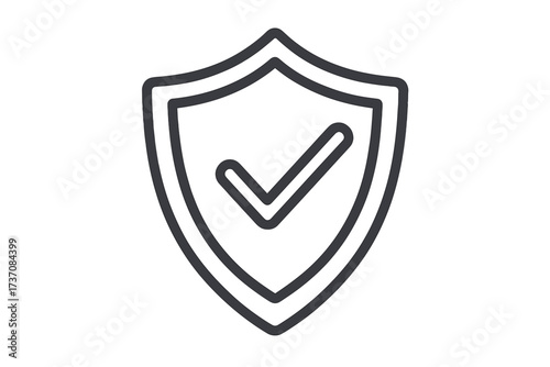 Shield and checkmark outline icon. Security, protection, safety, and guarantee concept. Verified, approved, and confirmed sign. Quality and trust symbol for web design.