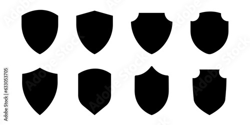 Shield icon in glyph. Black shield badge. Shield emblem set. Security badge in glyph. Safety emblem icon set