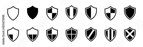 Shield icon set. Defence bagde, Securiry protect icons, signs collection. Vector