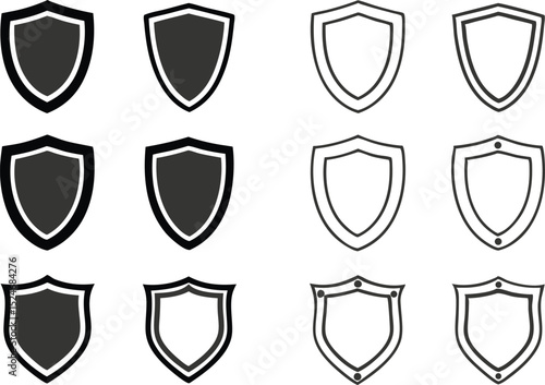 Shield Icon Set in Black and White with Various Designs