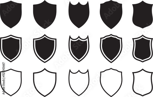 Shield icon set in black filled and outlined style. Protection icon. Security sign and symbol.