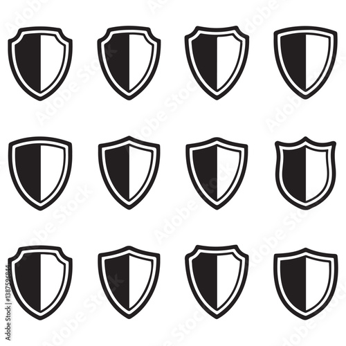 Shield icons set. Protect shield Silhouette Vector Black. with white background