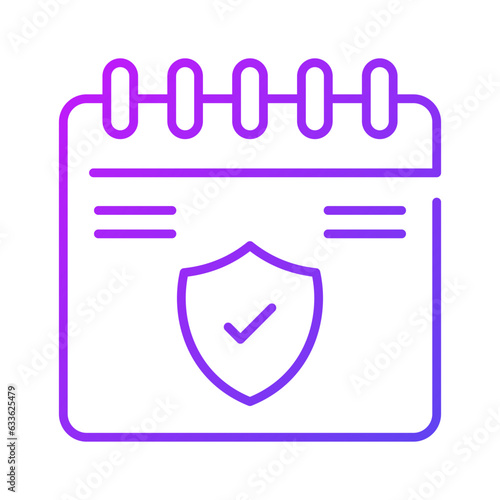 Shield on calendar showing concept icon of insurance validity, insurance calendar
