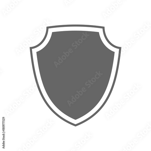 Shield shape icon. Gray label sign, isolated on white. Symbol of protection, arms, coat honor, security, safety. Flat retro style design. Element vintage heraldic emblem. Vector illustration