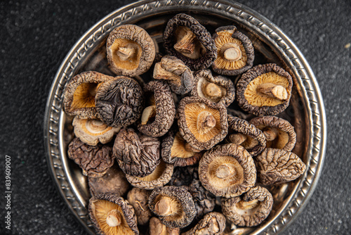 shiitake dried mushroom appetizer meal food snack on the table copy space food background rustic top view keto or paleo diet vegetarian vegan food