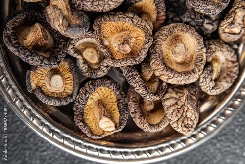 shiitake dried mushroom appetizer meal food snack on the table copy space food background rustic top view keto or paleo diet vegetarian vegan food