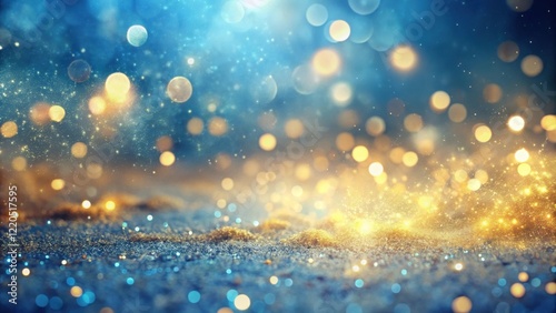 Shimmering Blue and Gold Glitter Background with Sparkling Lights