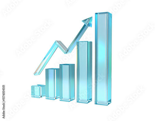 Shimmering blue bar graph with an upward arrow visually represents steady progress and market gains.