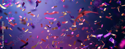 Shimmering confetti gently drifting against a background of deep purple.