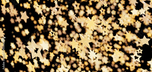 Shimmering gold stars on black. Festive, celebratory, magical.