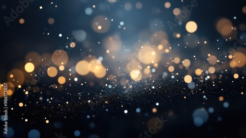 Shimmering silver bokeh lights contrast beautifully against a dark backdrop for a stunning copy space image