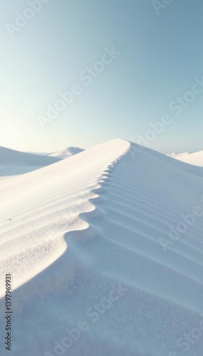 Shimmering white sand dune, fine grain detail, hot, sky, day