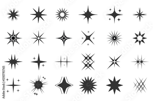Shine star sparkle vector set. Sparkle star icons. Shine icon. Stars sparkle doodles vector. Set sparkles star symbols vector. Bright sparkle, Star shine sparkle icon, vector illustration.