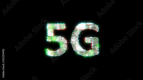 shining cybernetic text 5G on black - meta universe concept, isolated - object 3D illustration