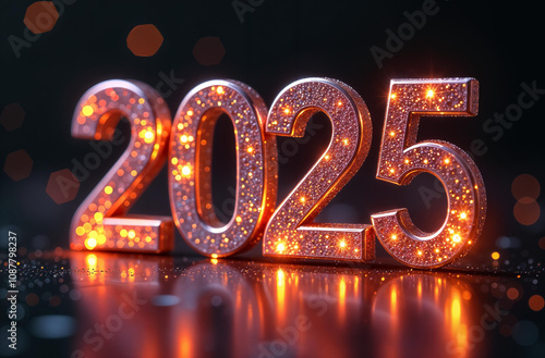 shining numbers 2025 close-up on a dark background. Concept- New Year