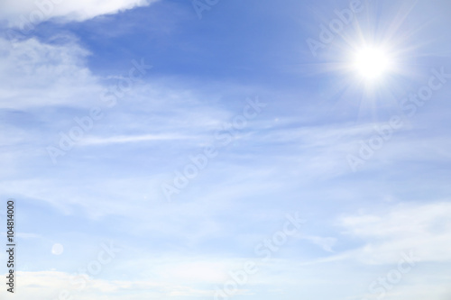 Shining sun on blue sky and cloud.