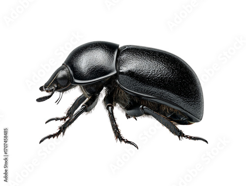 Shiny Black Beetle in Side Profile, Detailed Exoskeleton, Isolated on Transparent Background.png