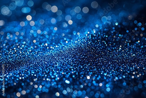 Shiny Blue Glitter in an Abstract Defocused Background - Christmas and New Year Texture