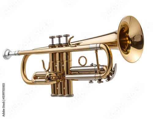 Shiny brass trumpet with detailed valves isolated on transparent background PNG