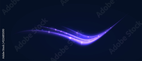 Shiny bright purple glowing sparkling curved line with magical light effect of magical sparkle dust and glitter particles. Glow effect for game interface design.