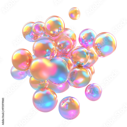 shiny bubbles fluid holographic Iridescent 3d render icon isolated on transparent background cutout