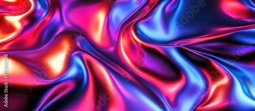 Shiny chrome neon backdrop featuring a warped metallic surface Abstract surreal 3D artwork