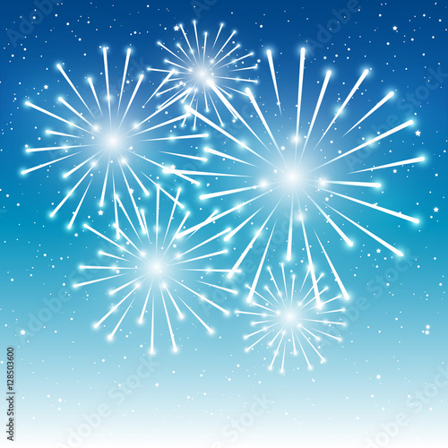 Shiny fireworks on blue background