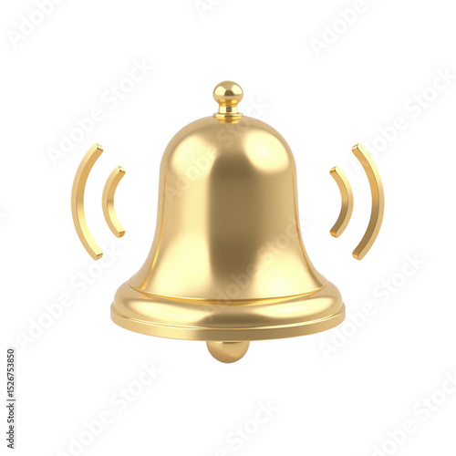 Shiny gold 3D bell ringing. Perfect for notification, alert, or app design. Ideal for websites, apps, and marketing materials.