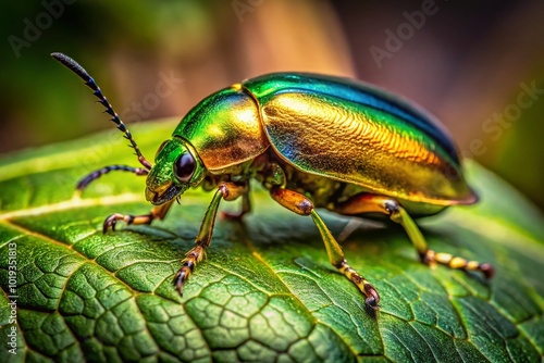 Shiny Gold Beetle on Leaf with Natural Background Capturing the Beauty of Insects in Nature