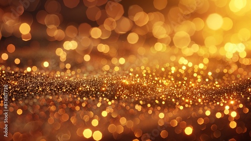 shiny golden background with bokeh light and sparkles, a digital background or element of graphics, for Christmas, Birthday, anniversary party celebration wallpaper with copyspace.
