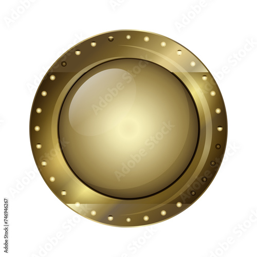 Shiny golden circular shield or award.