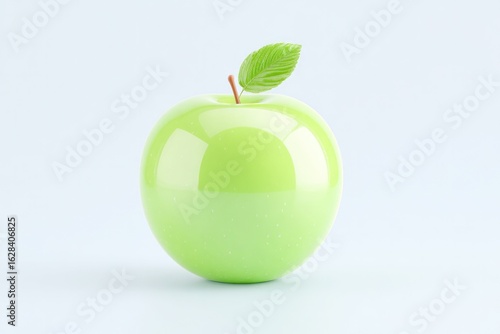 Shiny green apple with fresh leaf on top, minimalistic backgroun
