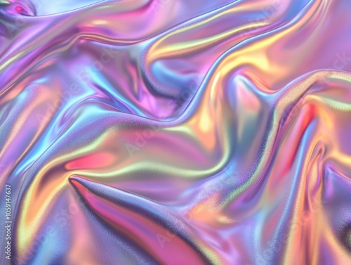 Shiny, iridescent digital art background. Abstract, shimmering flow of colors in pink, purple, blue and more.