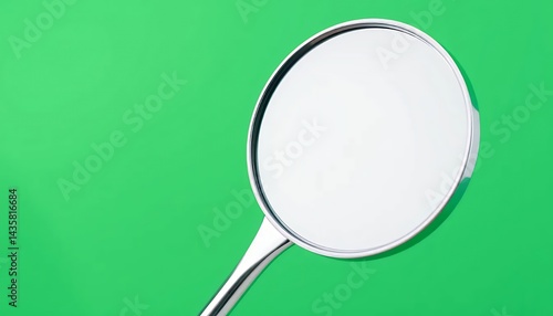 Shiny Metallic Hand Mirror with Round Reflective Surface Isolated on Green Screen for Beauty or Personal Care Advertisement Perfect for Mockup