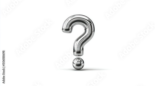 Shiny Metallic Question Mark on White Background 3D Rendered Symbol for Inquiry Curiosity an