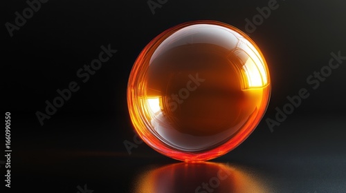 Shiny orange sphere on dark background. Possible use Product photography, scientific illustration