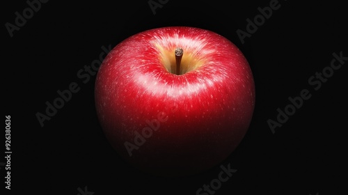 Shiny red apple on black background. Isolated with spotlight, emphasizing color and texture. Dramatic and visually striking composition.