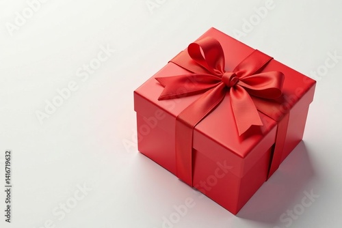 Shiny red gift box with satin gold ribbon on elegant white background, shiny, luxurious, present