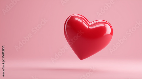 Shiny red heart on pink background suitable for Valentines Day, love, romance, greeting cards, social media, and design projects.