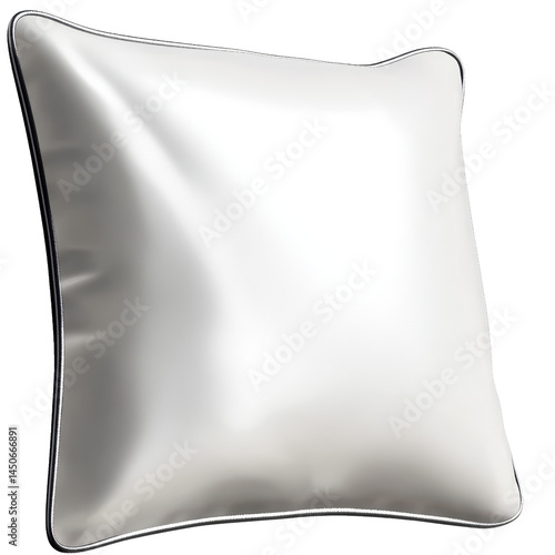 Shiny silver square pillow with smooth satin texture and subtle curves creating a sleek modern decorative cushion for home interior design