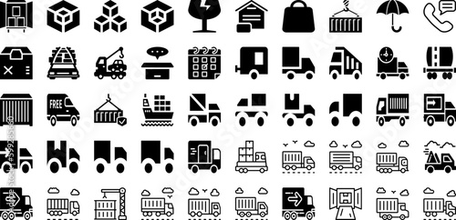 Shipping Icon Set Isolated Silhouette Solid Icons With Icon, Delivery, Symbol, Ship, Transportation, Set, Shipping Infographic Simple Vector Illustration